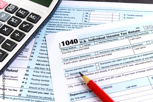 United States federal income tax return IRS 1040 documents and calculator