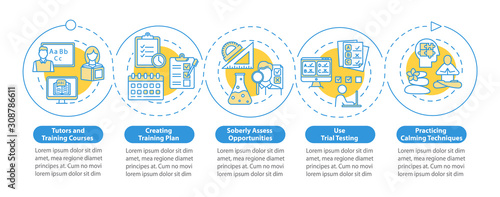 University entrance vector infographic template. Business presentation design elements. Data visualization with 5 steps and options. Process timeline chart. Workflow layout with linear icons