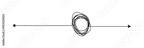 Untangling lines with arrow - continuous flowing thread that twists and turns. Tangled disorder turns into order line. Set tangled arrows, simple double oval and heart arrow in eps 10.