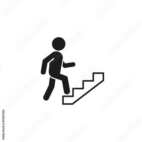 Upstairs icon sign. Walking man in the stairs flat design. Vector isolated illustration