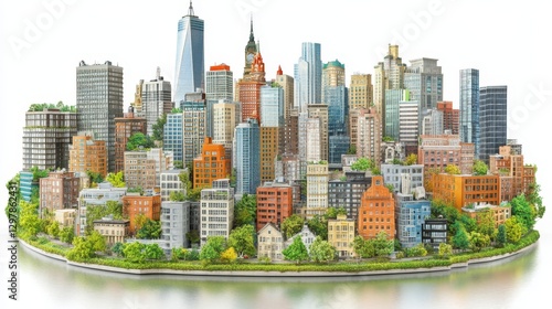 Urban landscape Miniature city model Modern architecture illustration Detailed city skyline Isolated cityscape Creative urban panorama