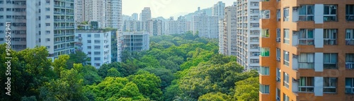 Urban landscape with buildings and greenery