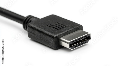USB cable close-up, showing plug detail isolated on white, minimalist style