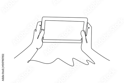 Using gadget concept. Single line draw design. Vector graphic illustration