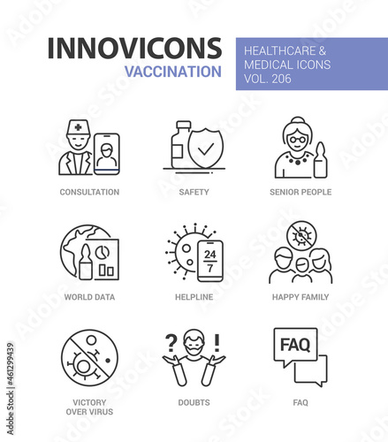 Vaccination - modern line design style icons set