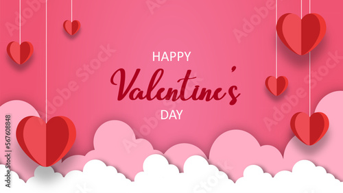 Valentine background, Red hearts background. Beautiful hearts on pastel pink table flat lay composition. Valentines Day greeting card design