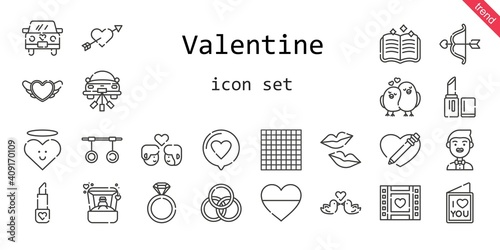 valentine icon set. line icon style. valentine related icons such as love, groom, couple, ring, engagement ring, lipstick, wedding video, kiss, heart, wedding car, cupid, spellbook, rings, love birds