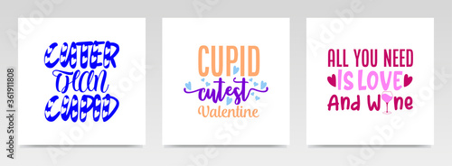 Valentine quotes letter typography set illustration.