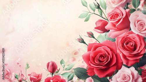 Valentines Day Romantic Background with Red Roses and Hearts for Love Celebration and Floral Design