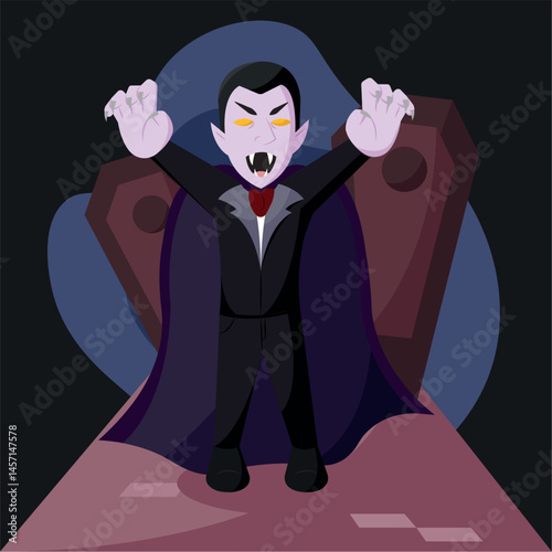 Vampire rising from coffin. Vector