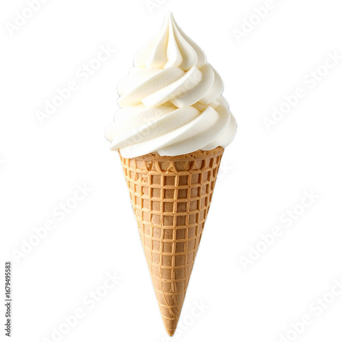 Vanilla Drizzle Ice Cream Cone, isolated on transparent background