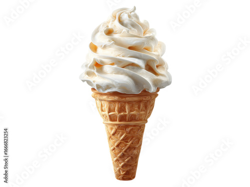 Vanilla soft serve ice cream in a waffle cone on a black background Keywords: ice cream, soft serve, vanilla, cone, waffle cone, Isolated On Png Transparent Background