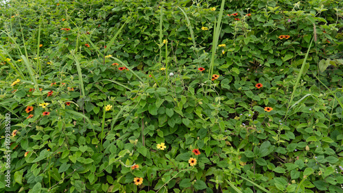 Variety of colors color of Black eyed Susan Vine flower. Flowers with climbing stems. They are popularly planted as ground cover or to cling to walls to create beauty.