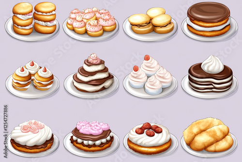 variety of delicious pastries and desserts on plates