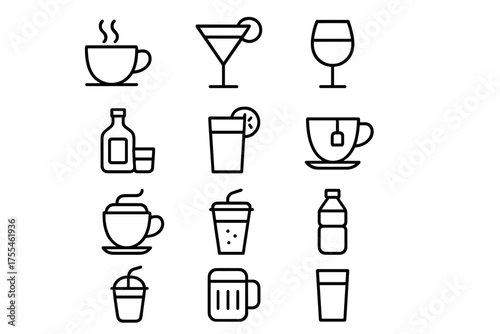Various beverage icons showcasing drinks from coffee to cocktails in a fun and minimalist design