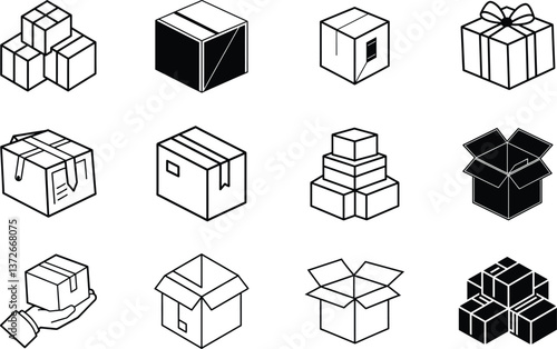 Various Cardboard Boxes Packaging, Shipping, Delivery, and Gift Icons