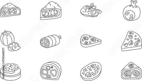 Various tomato dishes, showcasing diverse culinary creations with fresh tomatoes in a simple line art style