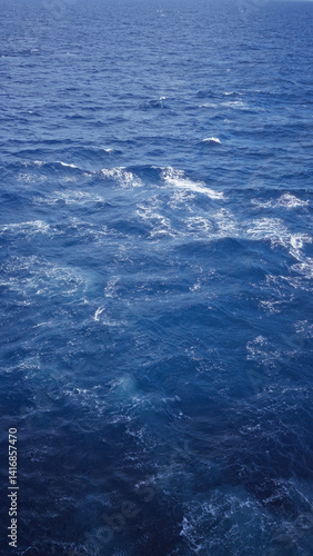 Vast ocean with deep blue waves under clear sky, showcasing nature's beauty and tranquility in a serene coastal setting, highlighting the power and expanse of the sea.