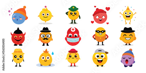Vector art of collection of cute and funny emoji characters, isolated on white background