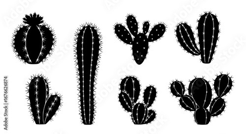 Vector art of set of various cactus plant silhouettes for design for POD