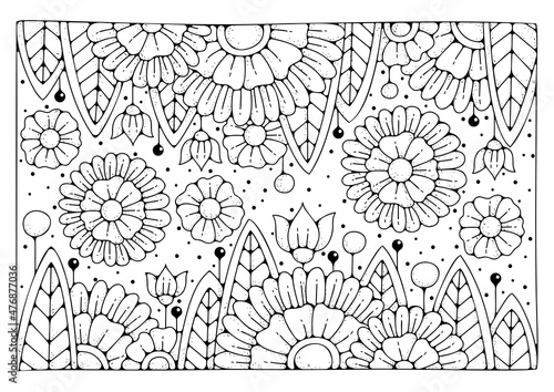 Vector background for coloring. Black-white flowers. Coloring page. Art therapy.