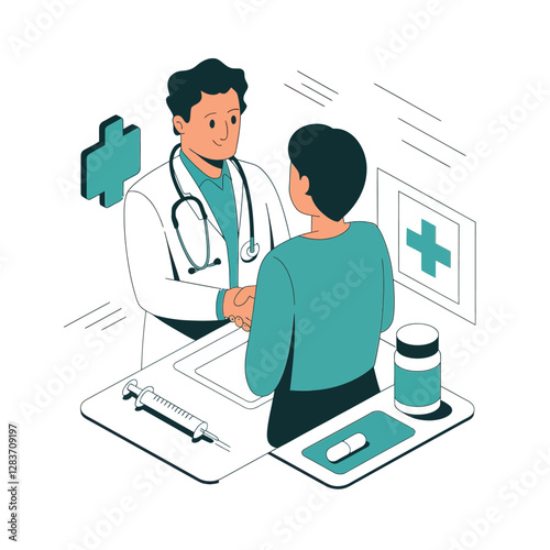vector colorful The medical field and care between the patient, the doctor, nurse and hospital