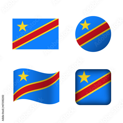 Vector Democratic Republic of the Congo National Flag Icons Set