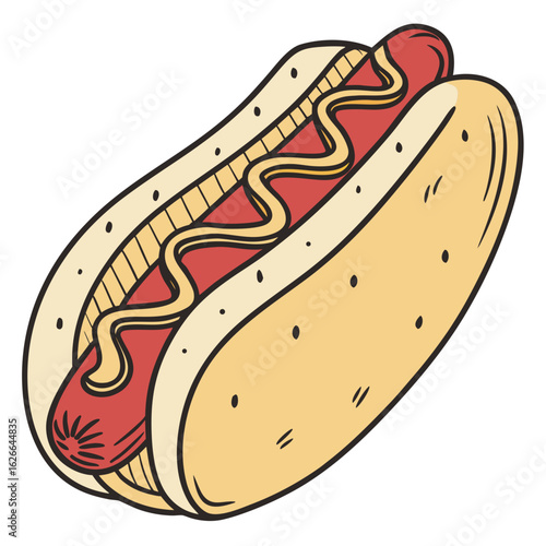 Vector Flat Color, Hotdog, Isolated on White Background