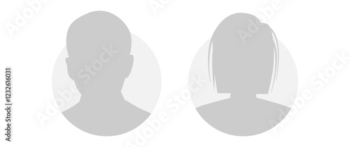 Vector flat illustration in grayscale. Icons of man and woman. Avatar, user profile, person icon, profile picture. Suitable for social media profiles, icons, screensavers and as a template.