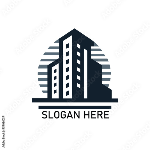 Vector graphic design of building logo illustration in line art with Concept of square cityscape and skyscrapers Real estate logo design icon isolated on white background Building and Windows logo des