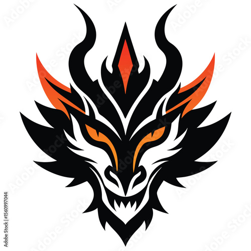 Vector graphics of tribal art abstract design face of fire dragon head on white background
