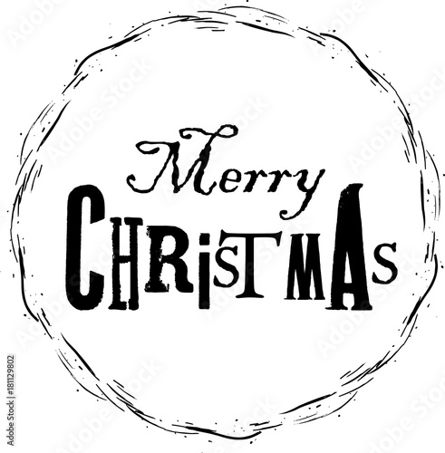Vector Hand drawn Christmas frame and printed text