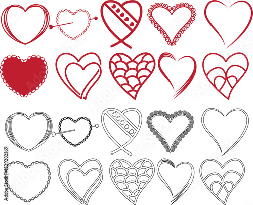 vector heart shapes, red heart collection, valentine element