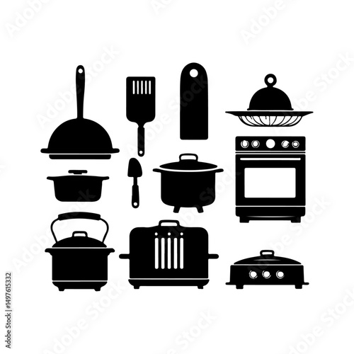 vector icon set of kitchen appliances in black silhouette