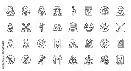 Vector Icons Set of Collection of Line Art Business Icons Depicting People and Groups. Vector Illustrations. EPS Editable