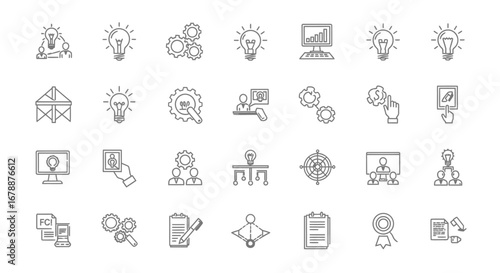 Vector Icons Set of Hand drawn business strategy and creative innovation icon collection. EPS Editable
