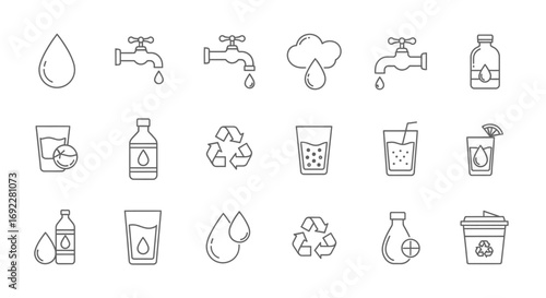 Vector Icons Set of Hand drawn doodle style icon set for water conservation and hydration. EPS Editable