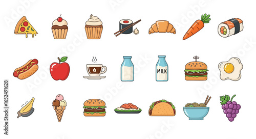 Vector Icons Set of Illustrated Feast A Colorful Collection of International Food and Drink Icons. Vector Illustrations. EPS Editable