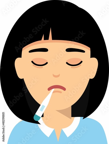 Vector Illustration of a Sick Woman with a Thermometer