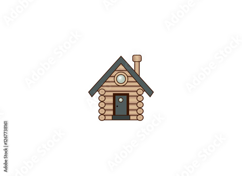Vector illustration of a wooden house or hut on a white background