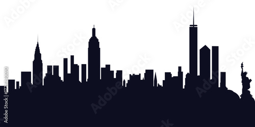 Vector illustration of urban cityscape silhouettes featuring modern black city buildings, skyline designs, and architectural layout on white background