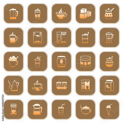 Vector image of coffee icon set with brown background