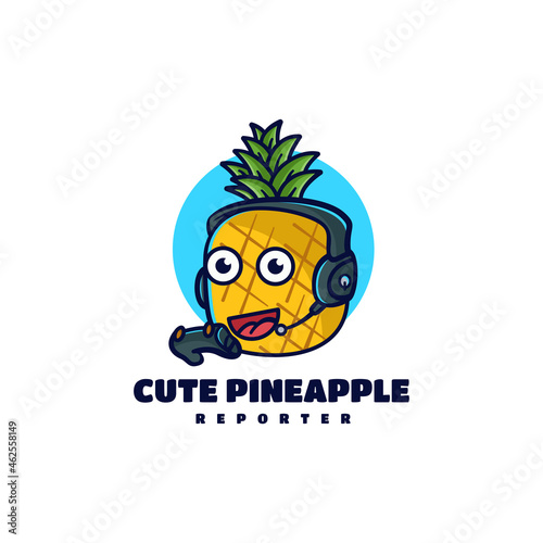Vector Logo Illustration Gaming Pineapple Mascot Cartoon Style.