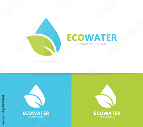 Vector of oil and leaf logo combination. Drop and eco symbol or icon. Unique organic water and aqua logotype design template.
