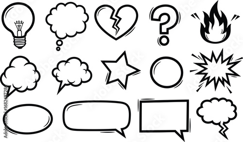 Vector outline speech bubbles and icons illustration clip art