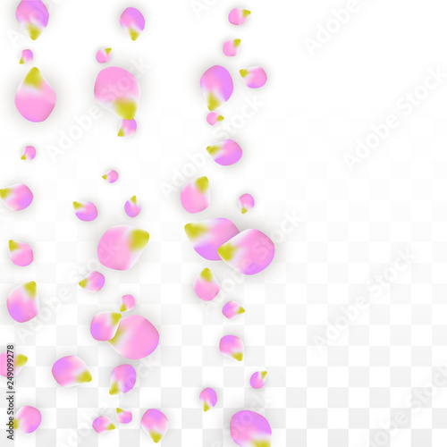 Vector Realistic Pink Petals Falling on Transparent Background. Spring Romantic Flowers Illustration. Flying Petals. Sakura Spa Design. Blossom Confetti.