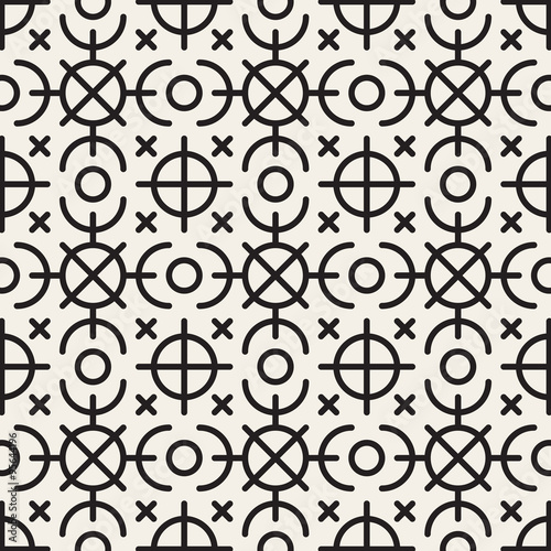 Vector Seamless Black and White Geometric Ethnic Circle Line Ornament Pattern