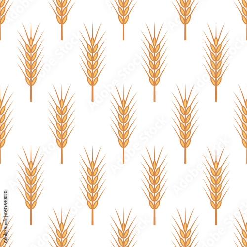 Vector Seamless Pattern with Agriculture Wheat, Cereal Ears. Organic Wheat, Rice Ears. Grain Ear Design Template for Bread, Beer Packaging, Farming, Organic Food Concept
