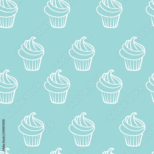 Vector seamless pattern with hand drawn cupcakes in line art style. Vector illustration