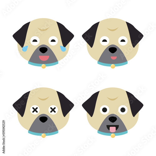Vector set of pug head in different emotions, pug head icon isolated on white background